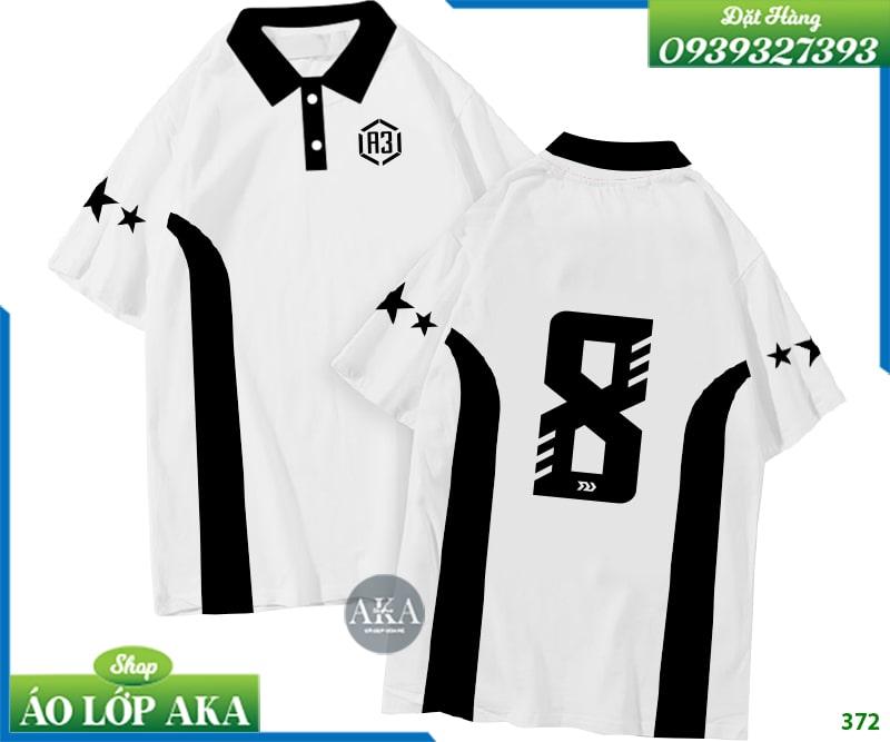 Mẫu áo đồng phục lớp màu trắng đen, in logo, slogan theo yêu cầu.